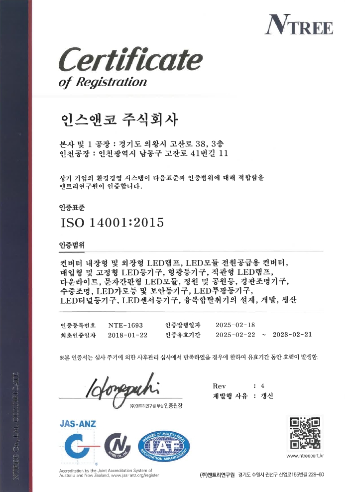 | 주소 : 경기도 의왕시 맑은내길 67, 201호 인스앤코 주식회사 | 대표이사 : 정상옥 | 사업자등록번호 : 123-86-44469 | | TEL : 031.689.4482 | FAX : 070.4015.6882 | Inquiry E-Mail : insled@insnco.com |