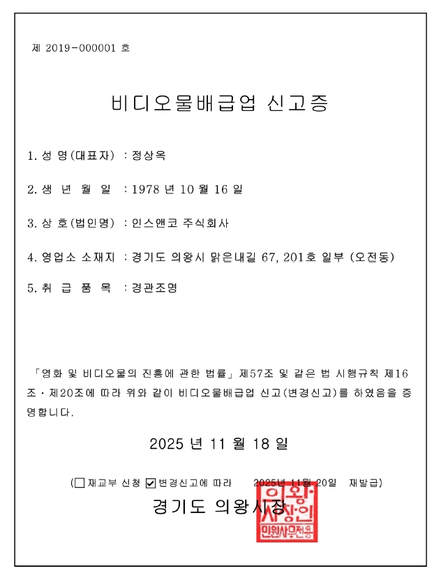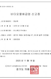 인허가 비디오물 배급업 신고증