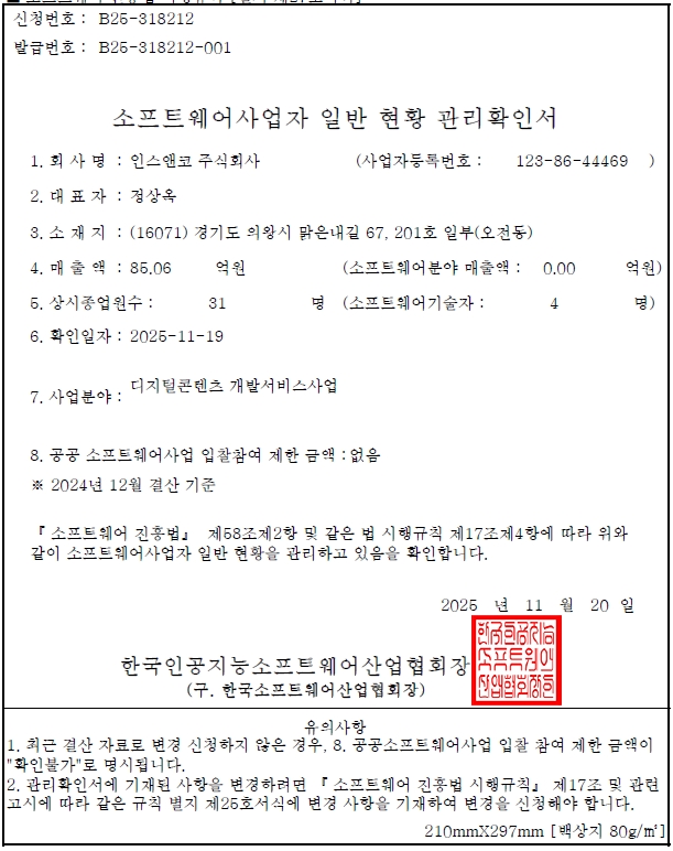 인허가 소프트웨어사업자 신고확인서