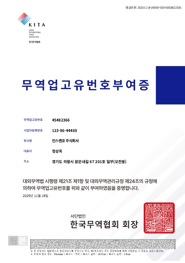 인허가 | 무역업고유번호부여증 페이지 정보 작성자 인스앤코 작성일16-07-18 11:19 조회5,234회 댓글0건 관련링크 이전글 다음글 목록 본문 인스앤코(주) 한국무역협회 댓글목록 등록된 댓글이 없습니다. 이전글 다음글 목록
