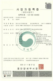 | 주소 : 경기도 의왕시 맑은내길 67, 201호 인스앤코 주식회사 | 대표이사 : 정상옥 | 사업자등록번호 : 123-86-44469 |